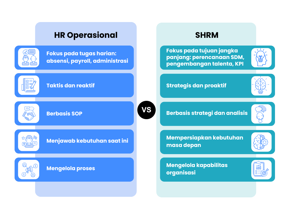 Esensi dari Strategic Human Resource Management (SHRM) terletak pada penyelarasan strategi HR dengan strategi bisnis. HR bukan lagi sekadar “supporting function”, melainkan penggerak strategi yang memastikan setiap keputusan terkait rekrutmen, pengembangan, struktur organisasi, hingga reward benar-benar mendukung kebutuhan jangka panjang perusahaan.