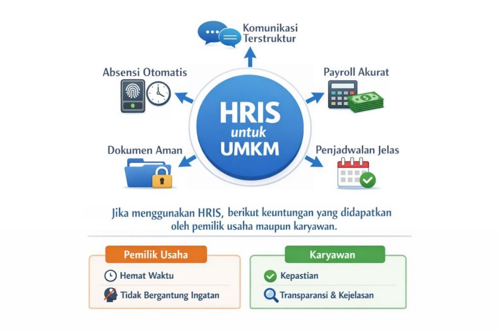 Bagi pemilik usaha, HRIS mengurangi ketergantungan pada ingatan dan menghemat banyak waktu. Bagi karyawan, sistem ini memberi kepastian, transparansi, dan kejelasan terhadap sesuatu yang sangat dihargai oleh generasi pekerja modern.