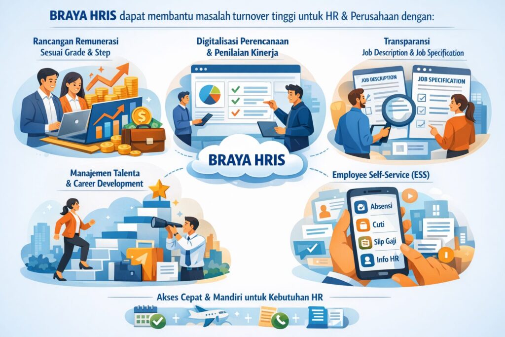 Pada kesempatan ini kami akan mengajak Sobat Braya melihat turnover dari sudut pandang yang baru, mulai dari definisi, dampak, penyebab, hingga solusi yang dapat meredam dan mencegah siklus turnover berulang.