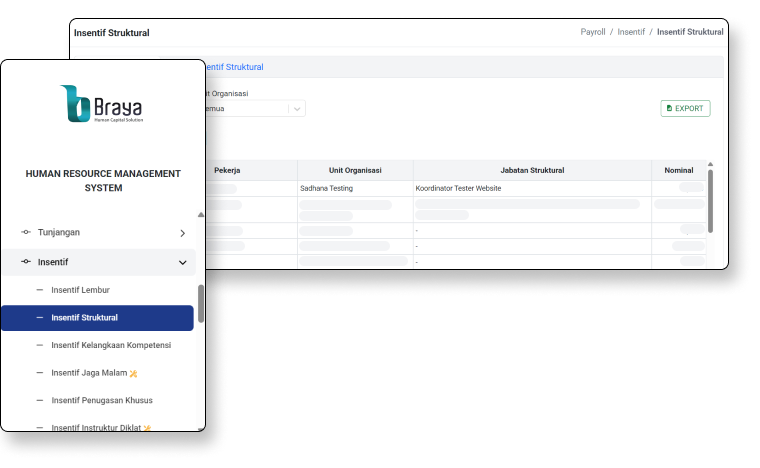 - HR: Memiliki full akses untuk menambah, mengubah, dan mengelola seluruh setup data insentif pekerja.