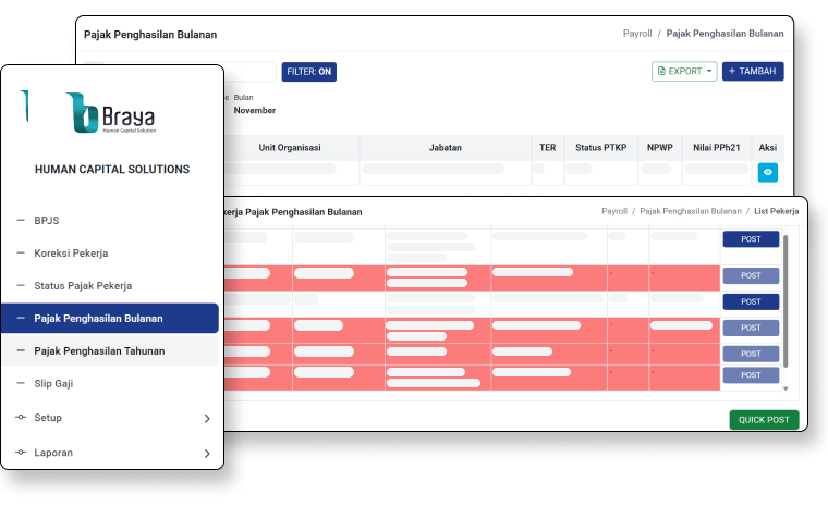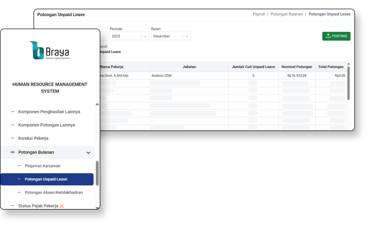 - HR: Dapat menampilkan seluruh data potongan bulanan pekerja.