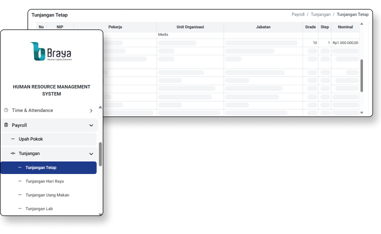 - HR: Memiliki full akses untuk menambahkan, mengubah, dan mengelola seluruh data upah pokok berdasarkan grade dan step.