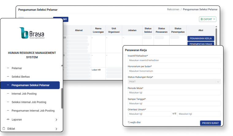 Pengelolaan rekrutmen lebih efisien, mulai dari perencanaan hingga seleksi pelamar dalam satu sistem.